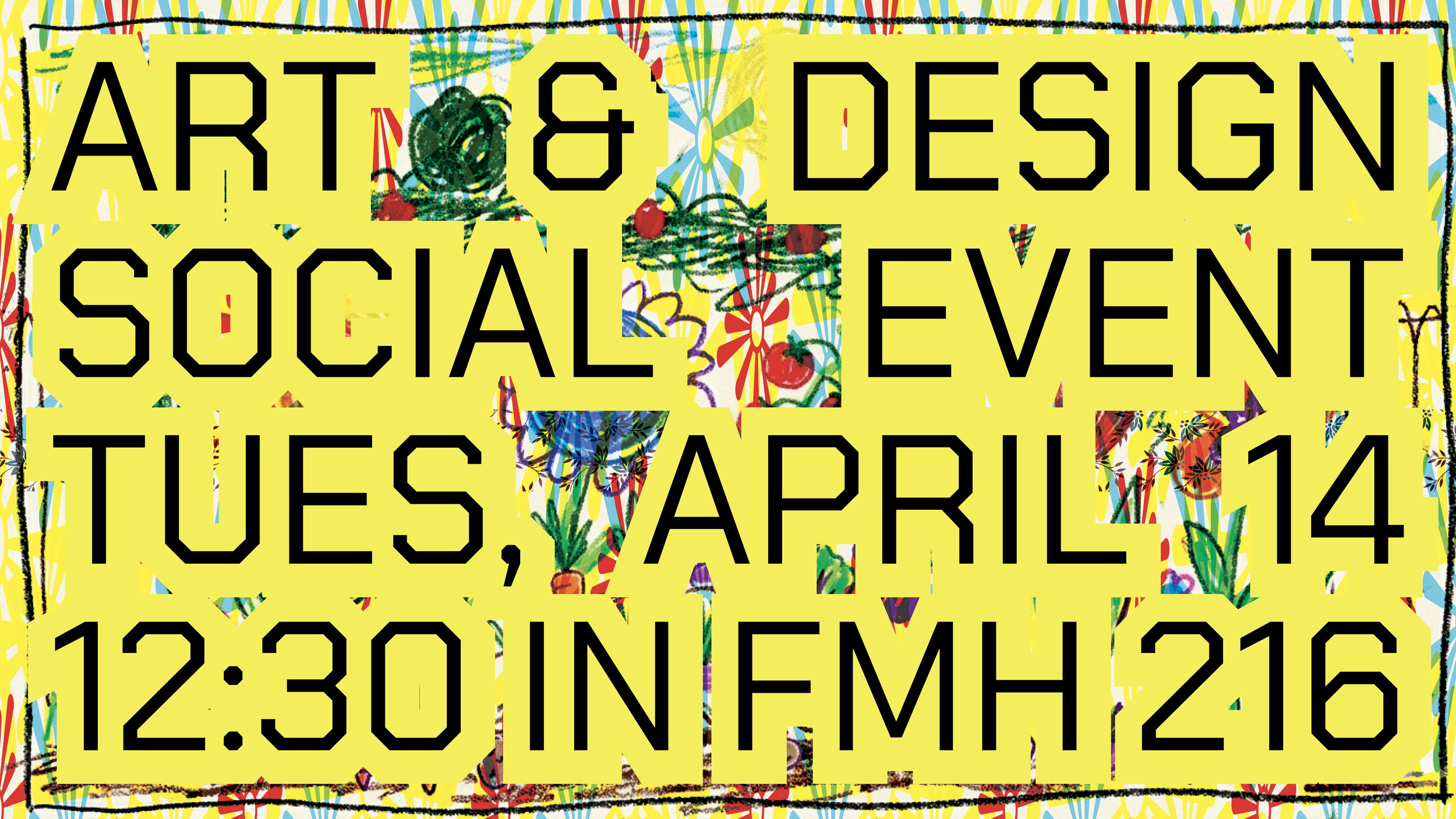 Come out to our social event! Come to FMH 219 on April 14 to meet other A&D majors, talk about cool classes you're taking, ask faculty questions, make new friends, and eat pizza!